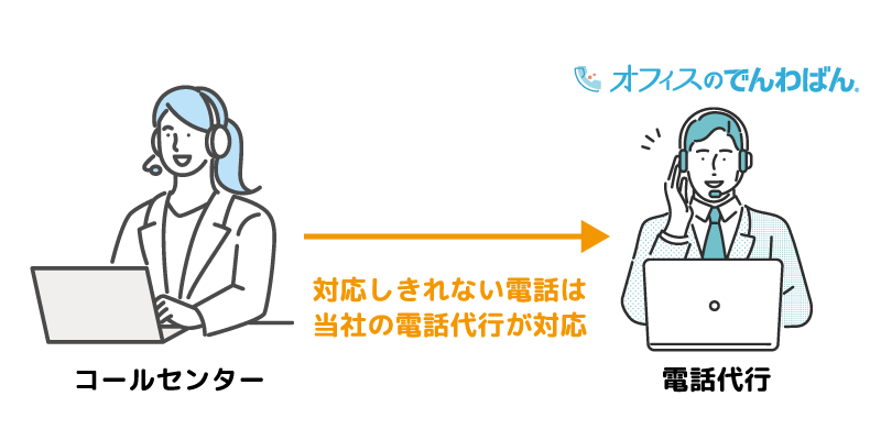 コールセンターやバックオフィスで受電しきれない場合に当社の電話代行サービスへ転送し対応することができます。