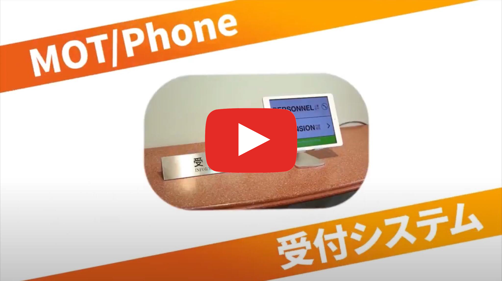 「MOT受付システム(モットフォン受付システム)」とは、受付に配置したiPad、android端末から担当者を直接内線で呼び出しや二次元コードの発行・利用会議室の自動案内・入退館リストの自動作成など受付対応・入退館管理の簡素化・自動化が可能な受付システムです。