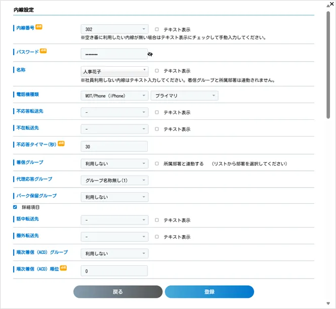 内線設定を行える権限をどの社員に付与するか設定可能です。部署単位ではなく個別に権限を付与できるのでセキュリティを担保しつつ、運用業務を適切に分担できます。