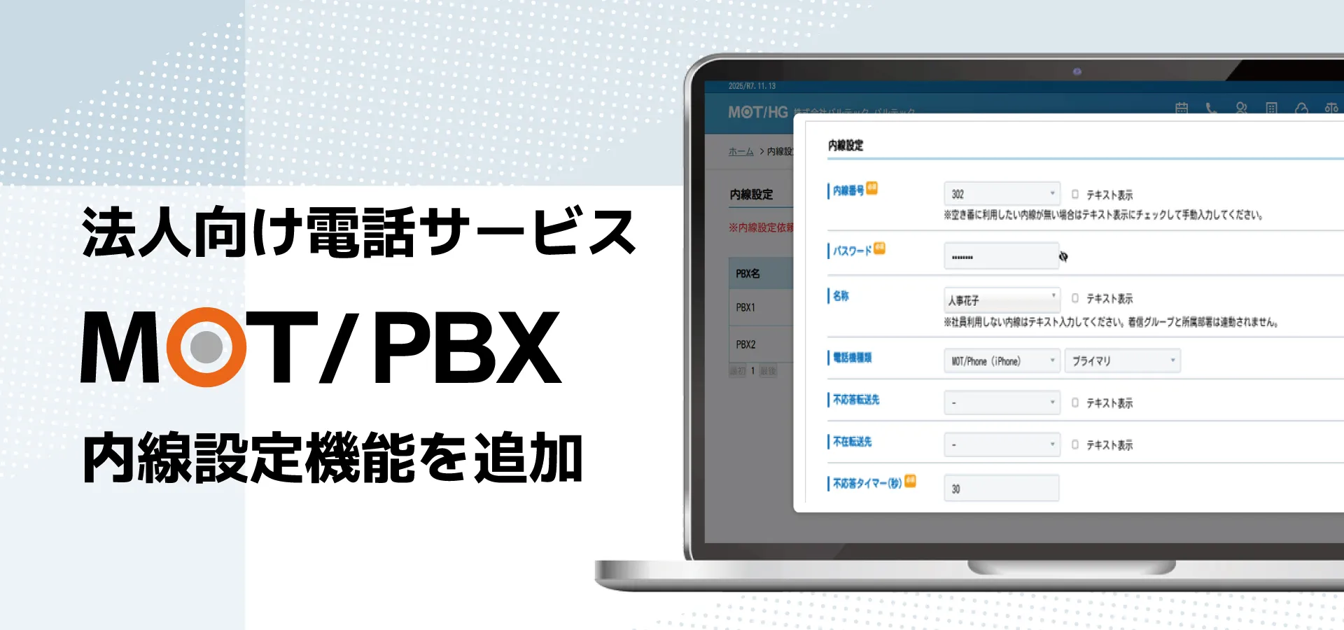 Q: 法人向け電話サービス「MOT/PBX」の内線設定を自社で完結できる新機能を追加