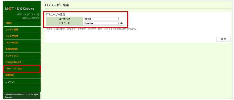 ・FTPユーザー設定機能の追加