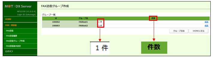 ・FAX送信グループ作成の「人数」、「人」を「件数」、「件」に変更