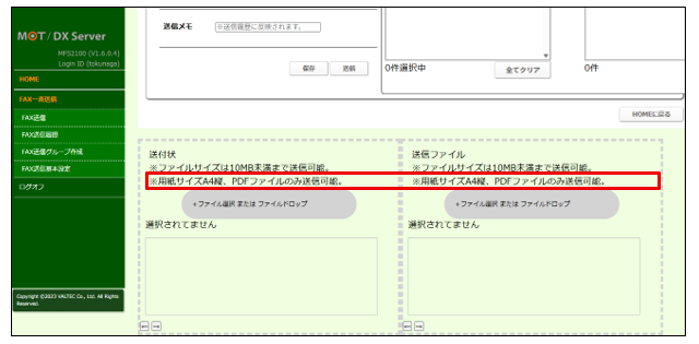 ・FAX送信画面に用紙サイズA4縦のみと、対応しているファイル形式の以下文言を追加