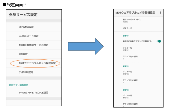 また、上記対応に伴い、設定メニューに「MOTウェアラブルカメラ監視設定」を追加しました。