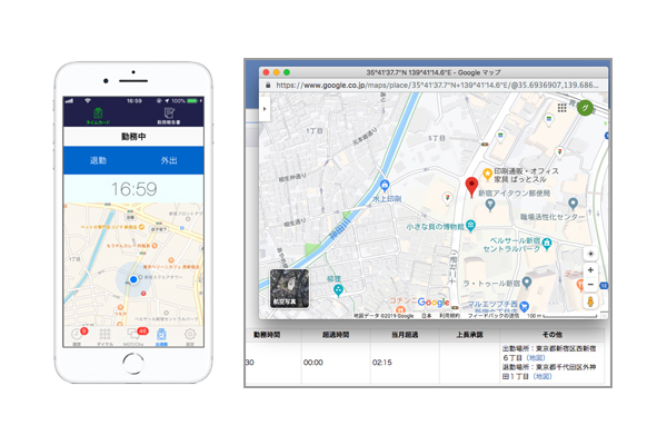 ブラウザやアプリから出退勤の打刻が可能。テレワーク・直行直帰・海外勤務などにも対応しています。MOTシリーズの電話プリと連動し、定時を過ぎても退勤していない場合には着信にてアラートを通知。残業時間の削減に繋がります。